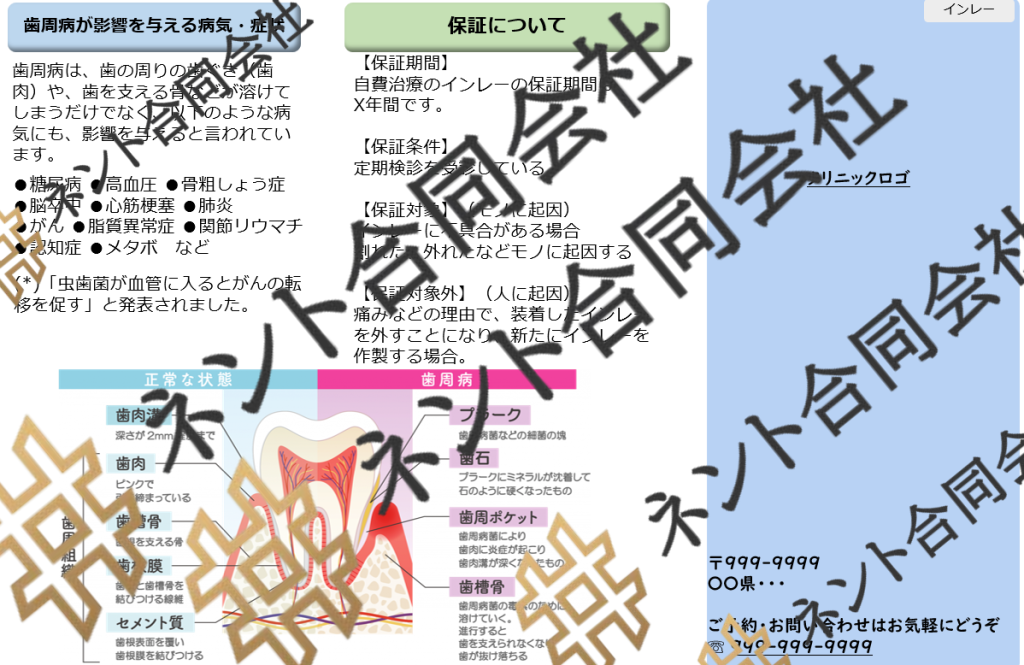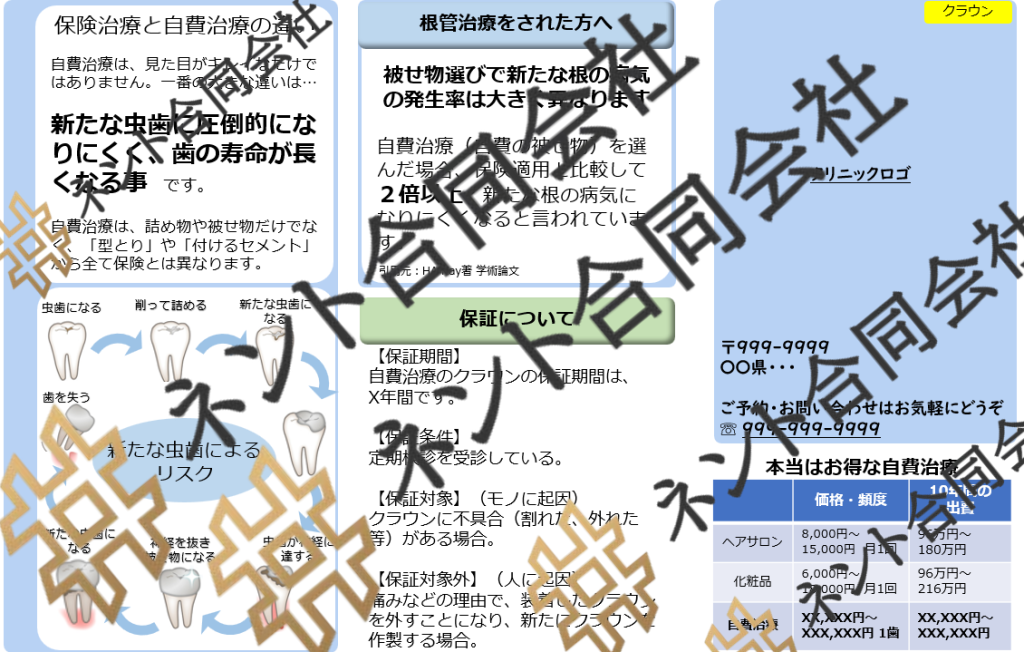 自費治療の保証条件や期間についても記載があり、安心材料としても機能します。